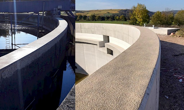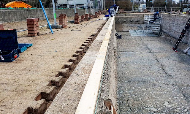 Bei der Instandsetzung von Räumerlaufbahnen konnten wir bei einigen Kläranlagen unser Können unter Beweis stellen. In erster Linie geht es darum, dass der Räumer auf einer ebenen Fahrbahn fahren kann, genügend Gripp hat und das Material chemisch und mechanisch hoch belastbar ist. Für einen namenhaften Hersteller für Räumerlaufbahnsysteme mit Begleitheizung übernahmen wir bei einigen Objekten den Ausgleich der Mauerkrone. Dadurch konnte die Ebenheit für den weiteren Aufbau gewährleistet werden.