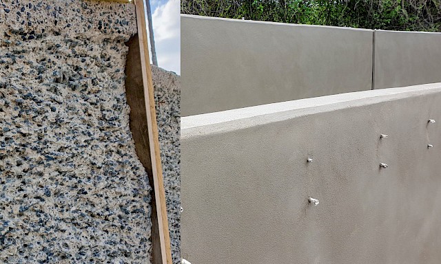 - Kunststoffvergütete Faserverstärkte Mörtel (in Spritzverarbeitung oder händischer Einbau)